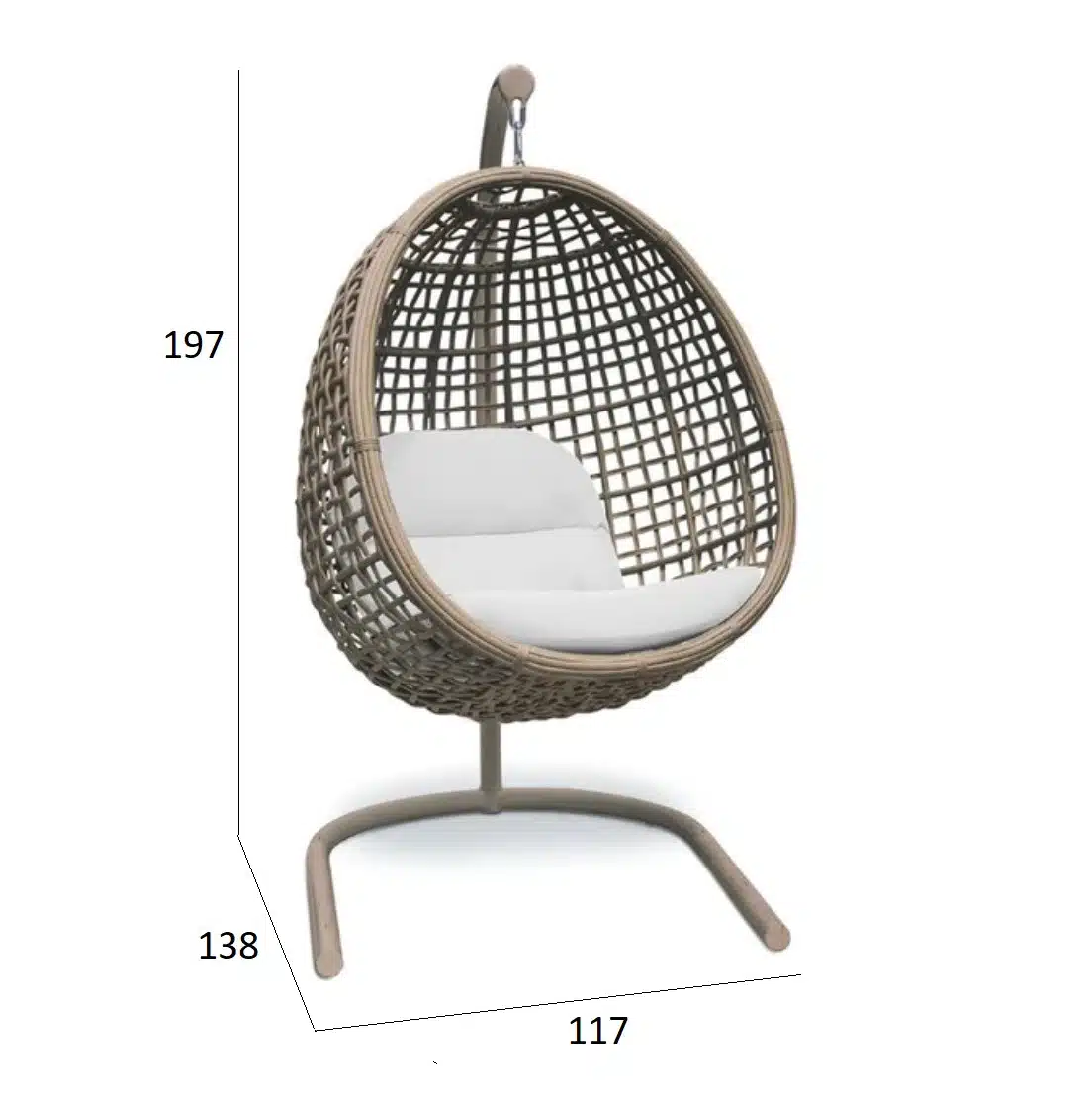 Rama wykonana jest z malowanego aluminium. Splot – technorattan KUBU MUSHROOM 15 mm w kolorze brązowym. Wysokie i miękkie poduszki są pokryte wodoodporną tkaniną.
