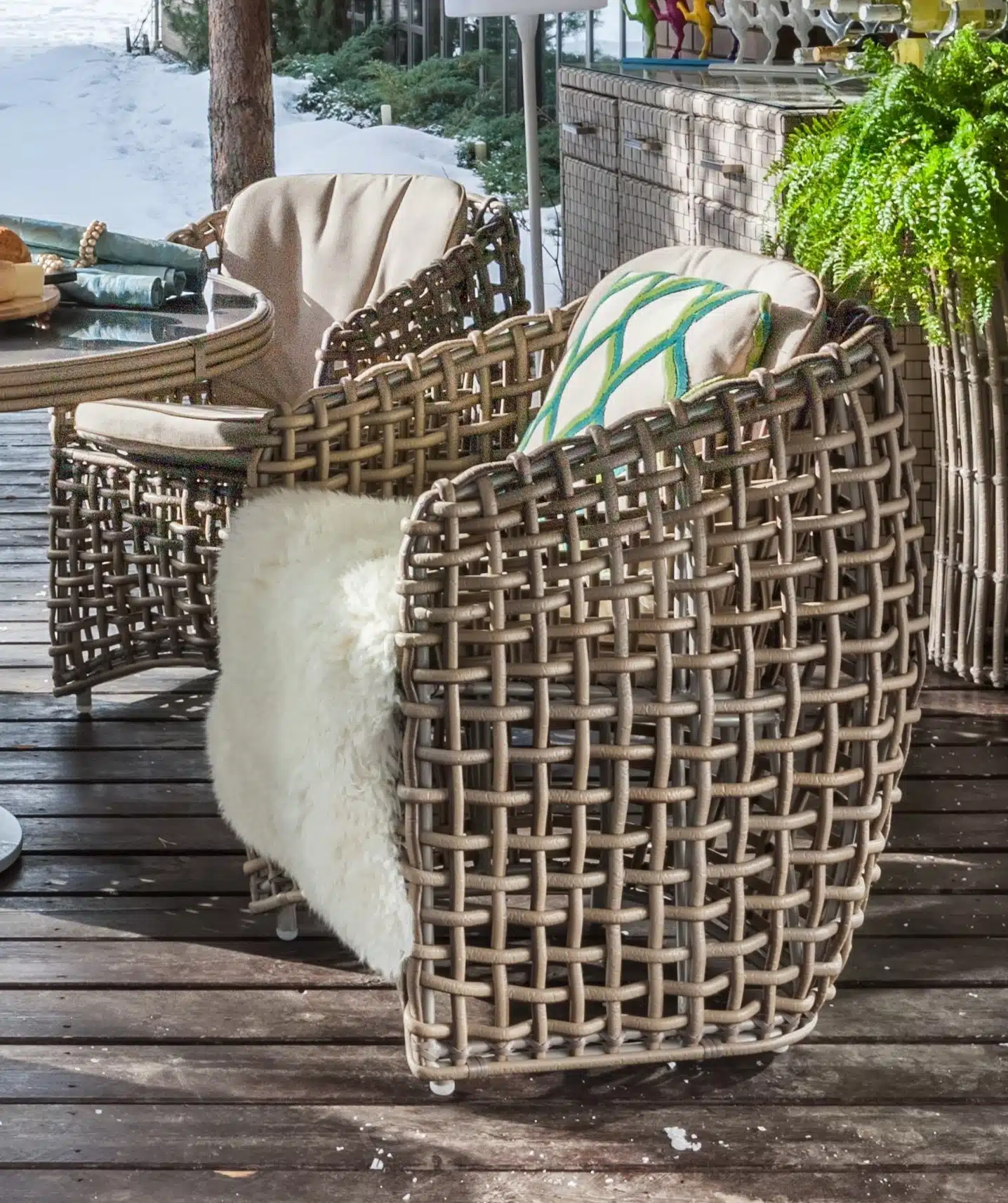 Nowoczesny design z otwartą plecionką, wykonaną z technorattanu, kolor którego przypomina naturalny odcień wikliny, praktyczny, stylowy, odporny na warunki atmosferyczne, wygodny w użytkowaniu – wszystkie te cechy można śmiało przypisać meblom z kolekcji DYNASTY CUBU.
