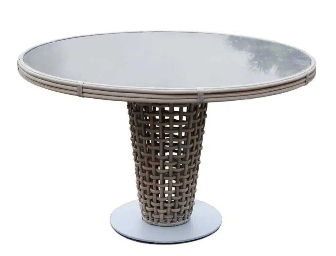Rama wykonana jest z malowanego aluminium. Splot – technorattan KUBU MUSHROOM 15 mm w kolorze brązowym. Blat stołu – szkło hartowane.